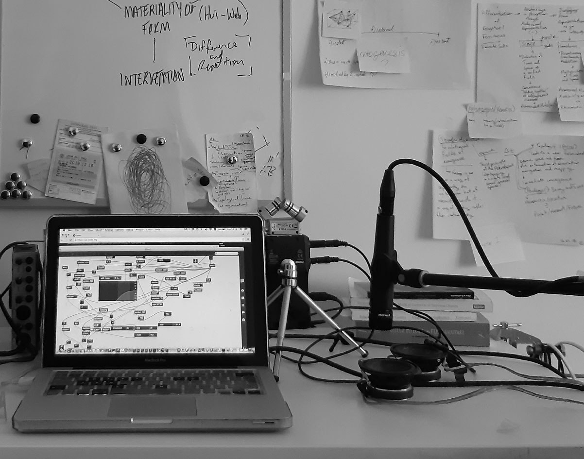 «It’s in a way a coping mechanism with the current situation. It’s plugged to the sound system in my flat so at times the microphones are just processing what I am doing here, sometimes it runs as a generative piece (overnight) and at times I am feeding it as an aux while I work on other projects, so it is always changing».