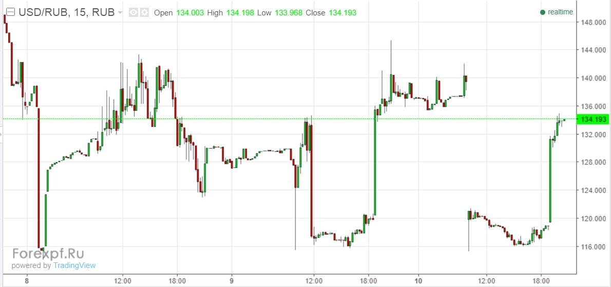 Рубль снова встретился с нефтью, теперь в районе 130 ...но понятно, что сейчас в условиях выходных курс рубля исключительно оффшорный, пока не откроются торги в России он может быть любым.