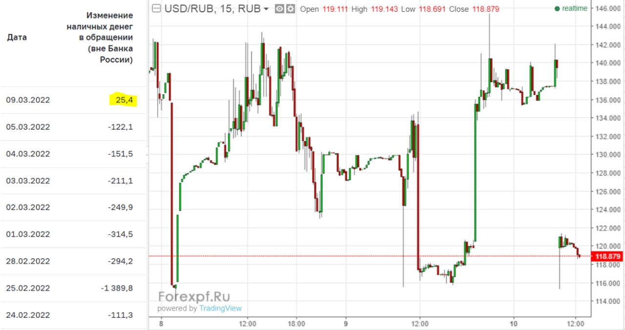Отток рублей в наличные сократился до 151.5 млрд в день, что говорит о постепенной нормализации ситуации