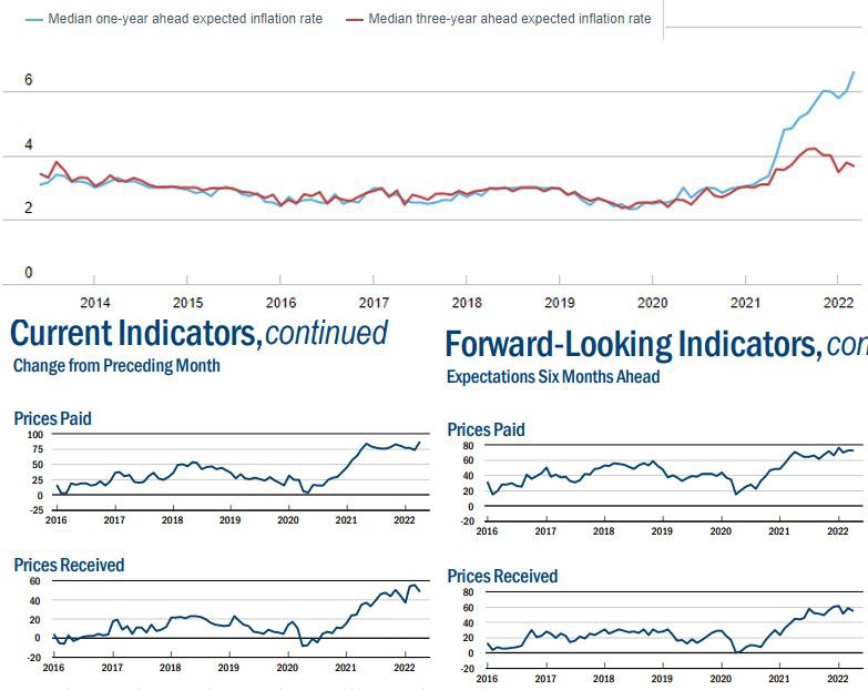Относительно низкие долгосрочные инфляционные ожидания позволяют ФРС пока особо не усердствовать в плане борьбы с инфляцией, это сейчас основной (и единственный) аргумент у сторонников мягкой политики. В то же время, сегодня ФРБ Нью-Йорка опубликовал свой отсчёт по деловой активности, рекордное количество компаний заявляет о росте закупочных цен и близкое к рекордному о росте отпускных цен. Причем в ближайшие полгода большинство компаний ожидает роста и отпускных и закупочных цен. При этом, в текущем моменте заказы сильные, но компании ожидают существенного ухудшения ситуации в ближайшие полгода.