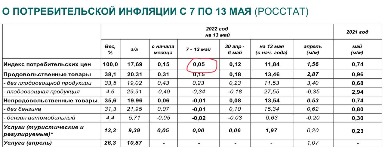 Росстат опубликовал данные по инфляции, впервые за последние недели наблюдалось небольшое падение цен на 0.02% за неделю.
