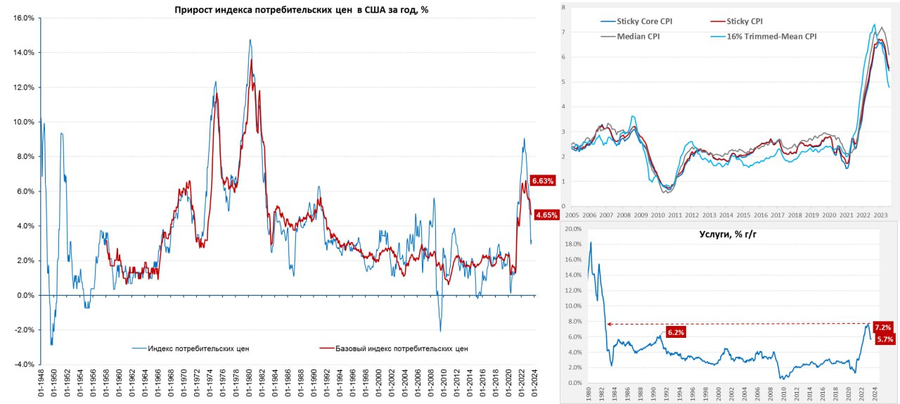 Месячная инфляция в последние пару месяцев держится в рамках цели ФРС, но трендовые показатели и отдельно сектор услуг пока далеки от того, что хотела бы видеть ФРС.