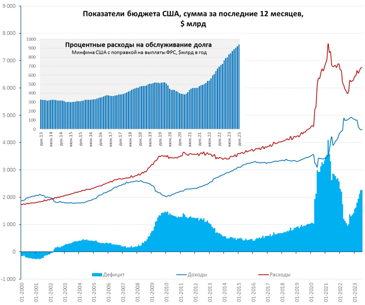 Непроцентные расходы придется в какой-то момент сокращать (или повышать налоги, что вряд ли дадут сделать республиканцы), что в условиях высоких ставок будет достаточно больно для экономики.