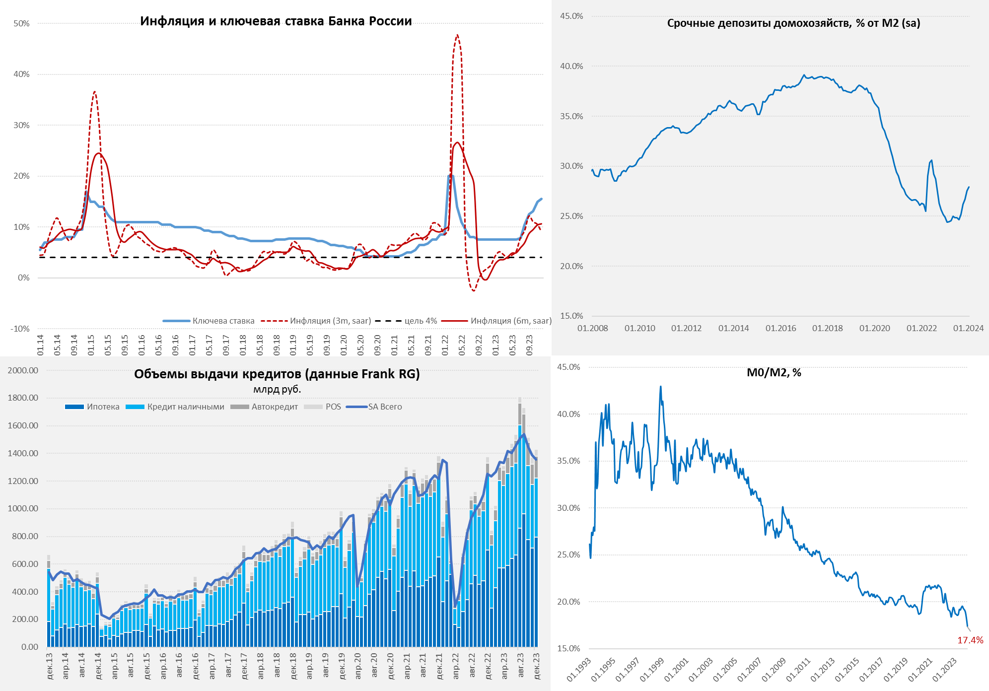 Все это говорит о том высокие ставки привели к тому, что традиционной большой декабрьский поток доходов осел в срочных депозитах, а не ушел в потребление, что в общем-то снижает инфляционный импульс. Кредитование пока очень неохотно остывает.