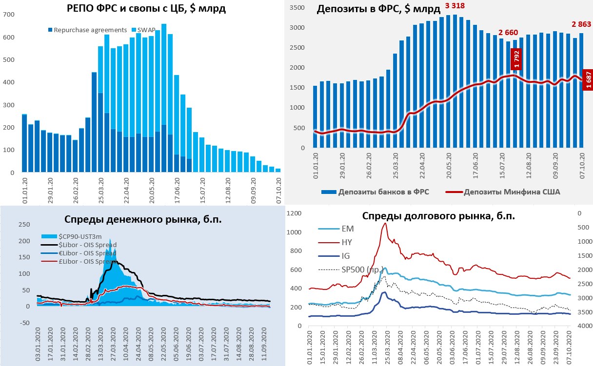 Если смотреть на ситуацию в целом, то фактически после быстрого отскока в первые месяцы лета, ситуация характеризуется остаточным инерционным ростом. С риском развернуться вниз без новых стимулов, а стимулы после волны оптимизма опять под вопросом… за пару недель до выборов пакет не утвержден… а, фактически, он может быть или до выборов, или если демократы возьмут все в свои руки (не только президентское кресло, но и контроль над обеими палатами Конгресса) … иначе согласовывать пакет можно будет еще долго. До рынков это дошло и они немного приуныли, хотя еще не потеряли надежду на стимулы и печатный станок ФРС ) так что ждем роста волатильности ...