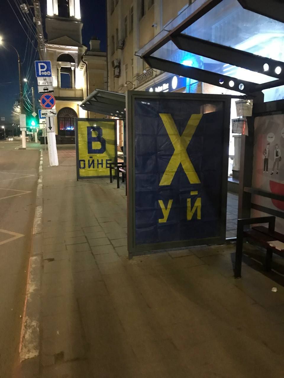 Вы наверняка помните эту акцию - когда в самом центре Твери на месте плакатов, призывающих на войну появились 2 огромных баннера “ХУЙ ВОЙНЕ”. К слову, эти баннеры были сделаны на обратной стороне старых плакатов с призывом на войну, висевших на этом месте - что особенно символично.