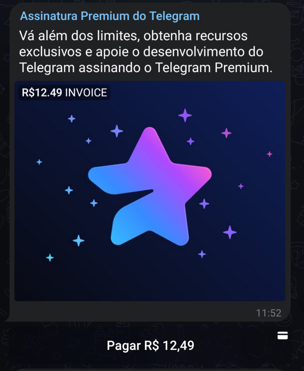 Se ainda está pensando em assinar, não façam pelo sistema de compras de sua loja (Google Play/App Store). Façam direto pelo bot @PremiumBot, que sai praticamente pela metade do que cobram por fora, o que na verdade, é o valor real da assinatura.