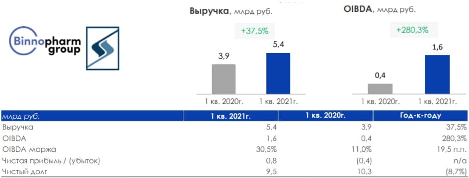 В I квартале выручка группы «Биннофарм», производящей эту вакцину, составила 5,4 млрд рублей (+37,5% год к году). Сильная динамика зафиксирована в госпитальном сегменте (+148%) — это антибиотики и препараты для борьбы с COVID. В розничном же сегменте рост гораздо скромнее — 22%.