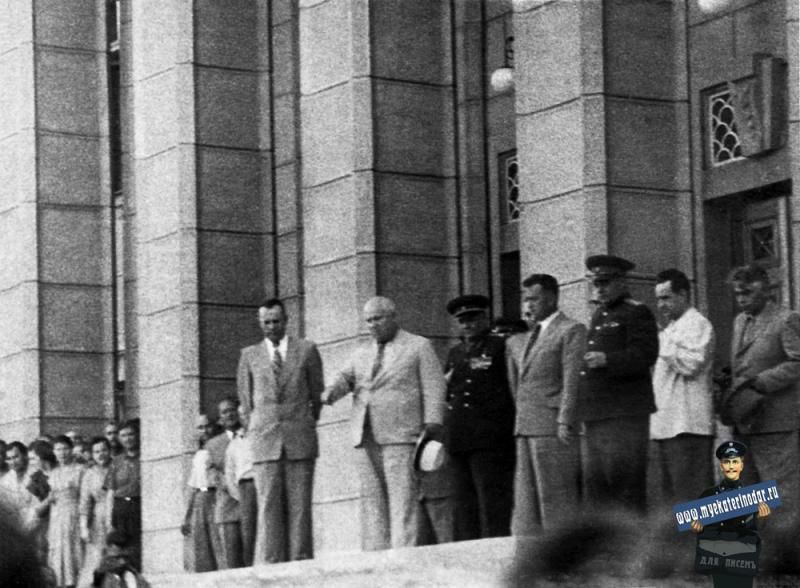 Разумеется советский лидер посещал и Краснодар. На фото – первый секретарь ЦК КПСС на ступеньках крайкома Краснодарского края (ныне – здание Законодательного собрания Краснодарского края), 1960 год