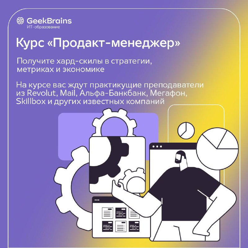 Вы работаете над реальным продуктом во время всего обучения, а команда из успешных продакт-менеджеров вам помогает на каждом этапе - вот как выглядит обучение продакт-менеджменту и управлению проектами в GeekBrains.