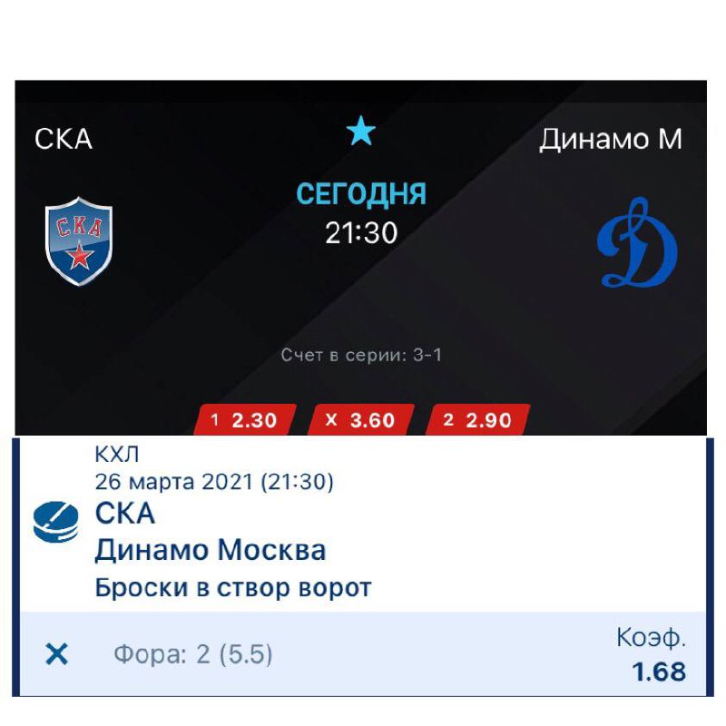 Судя по прошлым матчам если даже Москвичи выглядят по игре куда хуже, то все равно они бросают по воротам на равне со «СКА». Тут если они будут проигрывать по матчу, то будут играть с пустыми, набрасывать по воротам ото всюду, откуда можно лишь бы забить шайбу, фора должна заходить на легке.