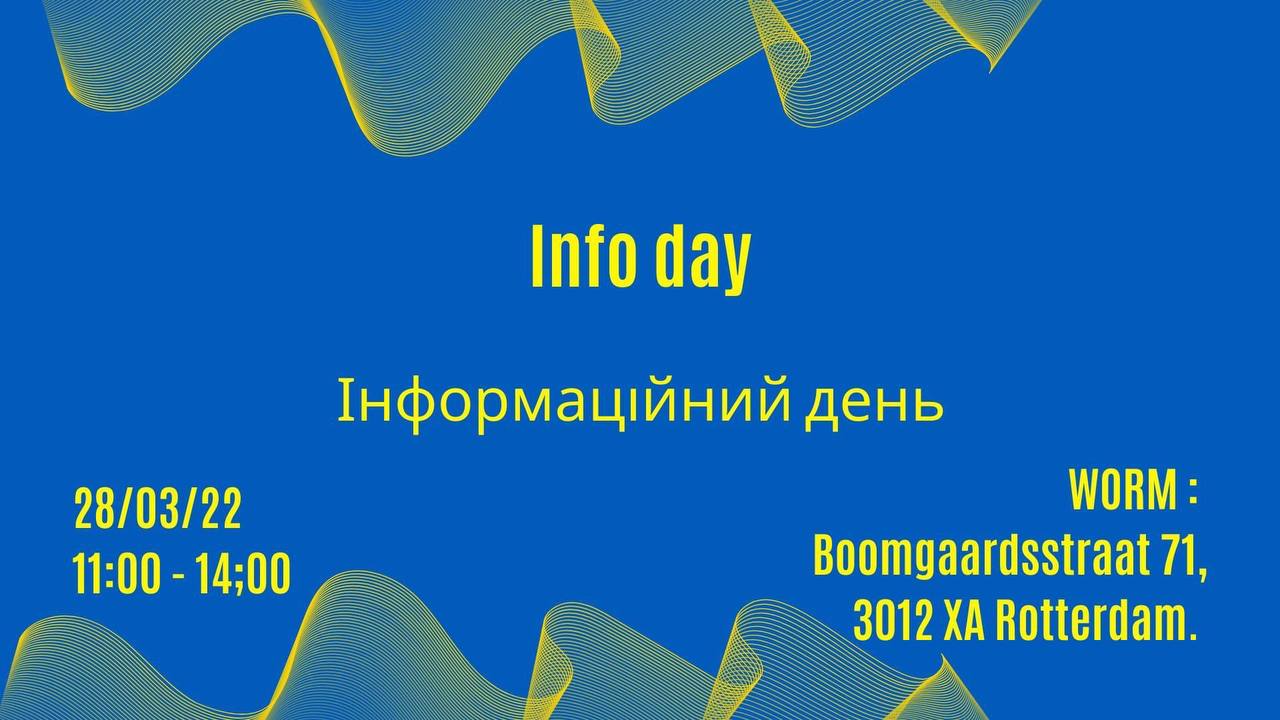 28-03-2022 об 11.00 хочемо запросити вас на інформаційні посиденьки для біженців з України. Будемо розказувати про те як отримати BSN, як і де шукати роботу, житло, садки, школи, творчі заняття. Презентуємо український дім та хаб в Роттердамі та ще поділимось цікавою та корисною для вас інформацією.