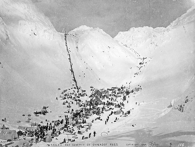 🔹 Тропа Чилкут была крутой, обледенелой и заснеженной. Хотя большую часть пути золотоискатели для перевозки припасов использовали вьючных животных, но как только они достигали Чилкут-Трейл, им приходилось бросать животных и остаток пути нести тяжелую ношу самим. Обычно для этого требовалось несколько раз взбираться и снова спускаться по замерзшему склону. Многие сдавались и возвращались домой.