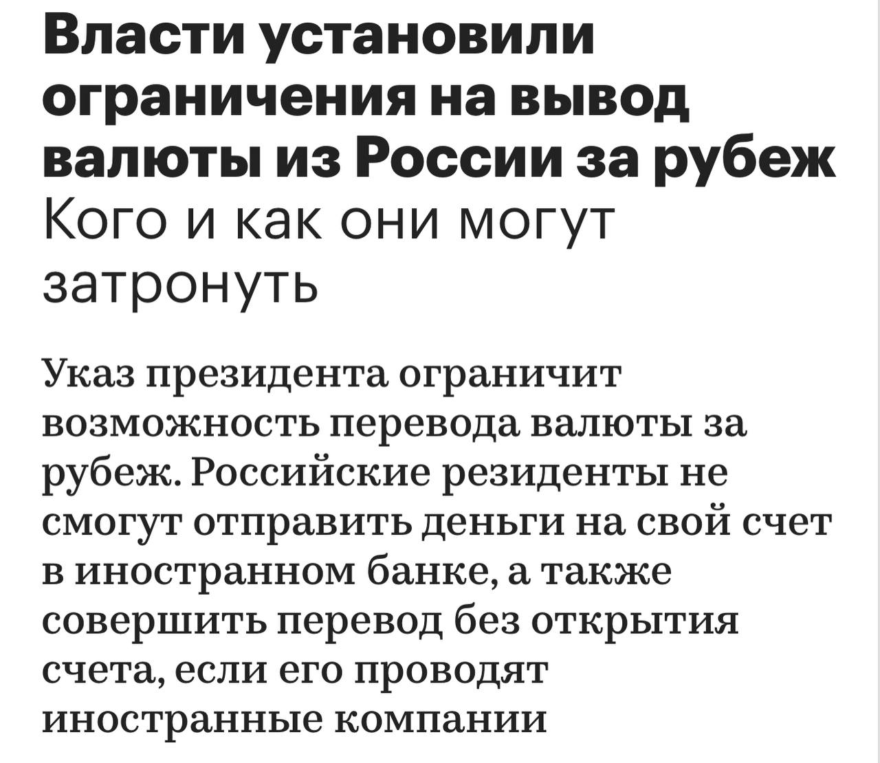 ⚡️ Владимир Путин своим указом запретил со 2 марта вывоз из РФ иностранной валюты в сумме, превышающей $10 тыс.