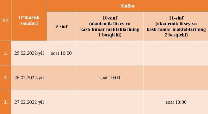 P.S. Малака (тест) синовлари март-май ойларида ўтказилади, ҳали аниқ саналари белгиланмаган. Шунинг учун турли канал ва гуруҳларда тарқатилган ўтган йилги ёки ундан аввалги йиллардаги аттестация муддатларига ишонмасликни сўраймиз.