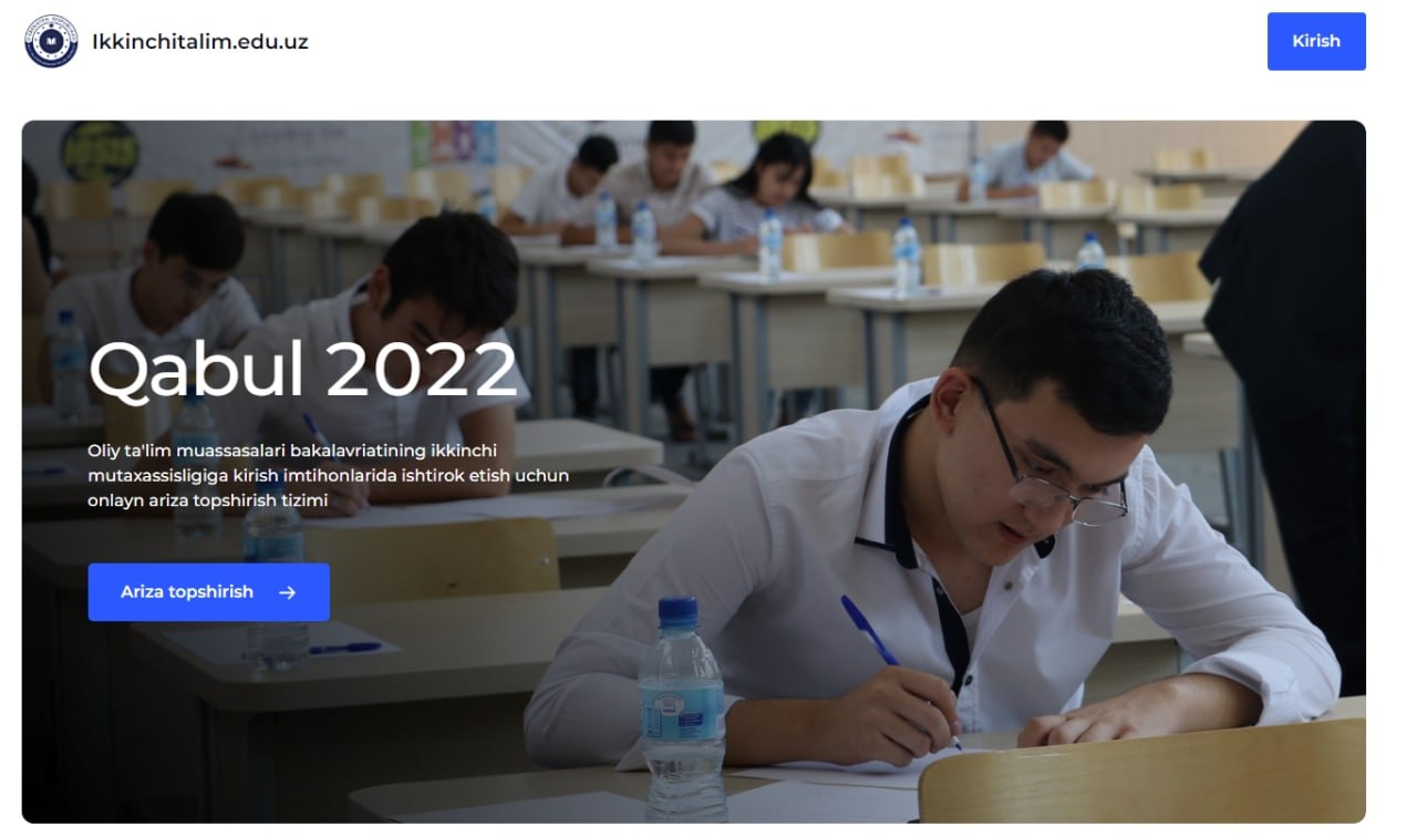 Республикадаги давлат олий таълим муассасаларига иккинчи ва ундан кейинги олий маълумот бўйича ўқитишга номзодлардан аризалар Олий ва ўрта махсус таълим вазирлигининг ikkinchitalim.edu.uz платформаси орқали онлайн қабул қилинади.