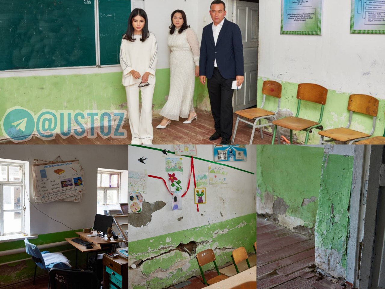 Тез орада ушбу мактабни таъмирлаш ва қайта жиҳозлаш ишлари бошланади. Лекин бу ишлар кимдир келгани учун эмас, тизимли йўлга қўйилиши ва ҳар куни давом эттирилиши керак. Токи энг чекка қишлоқ мактабирида ҳам энг камида зарур шароит бўлсин. Ана шундагина биз кўзлаган мақсадимиз — сифатли таълимга эриша оламиз” — Саида Мирзиёева