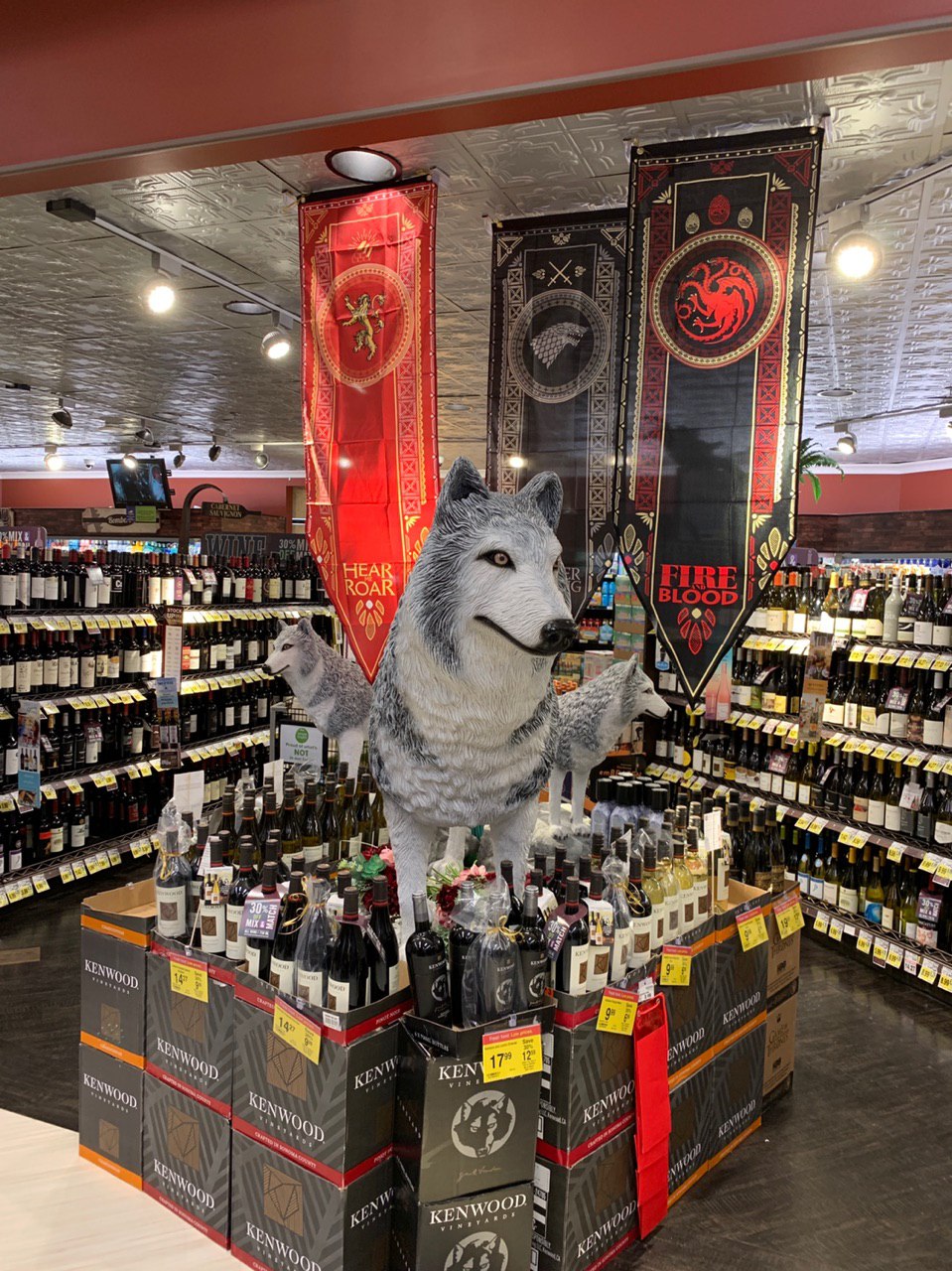 В американских магазинах любят устраивать всякие тематические инсталляции, чтобы побольше продать. Но больше всего, почему-то, любят их делать в алкогольных отделах.