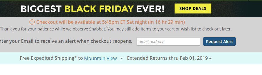 Все магазины страны, наняв доп персонал, как умалишённые работали по удлинённому графику и разгребали заказы покупателей и их деньги, а bhphotovideo спокойненько закрылся по своему обычному графику, вывесив на сайте табличку с отсчётом времени до "выхода в эфир" после шаббата.