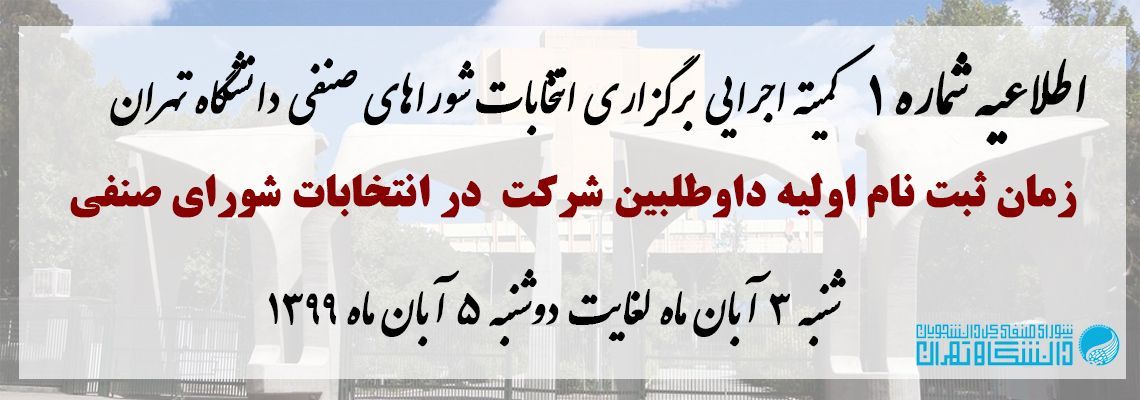 📌#مهم/اطلاعیه شماره ۱ کمیته اجرایی برگزاری انتخابات شورای صنفی واحد های دانشگاه تهران - آبان ماه ۱۳۹۹