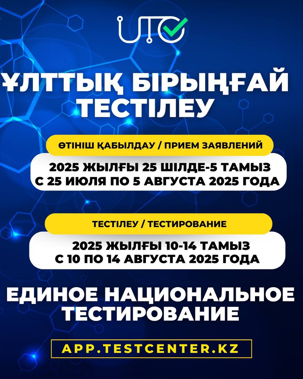 🔰 25 ШІЛДЕДЕ ТАМЫЗ АЙЫНДА ӨТЕТІН ҰБТ-ҒА ҚАТЫСУ ҮШІН ӨТІНІШ ҚАБЫЛДАУ БАСТАЛАДЫ