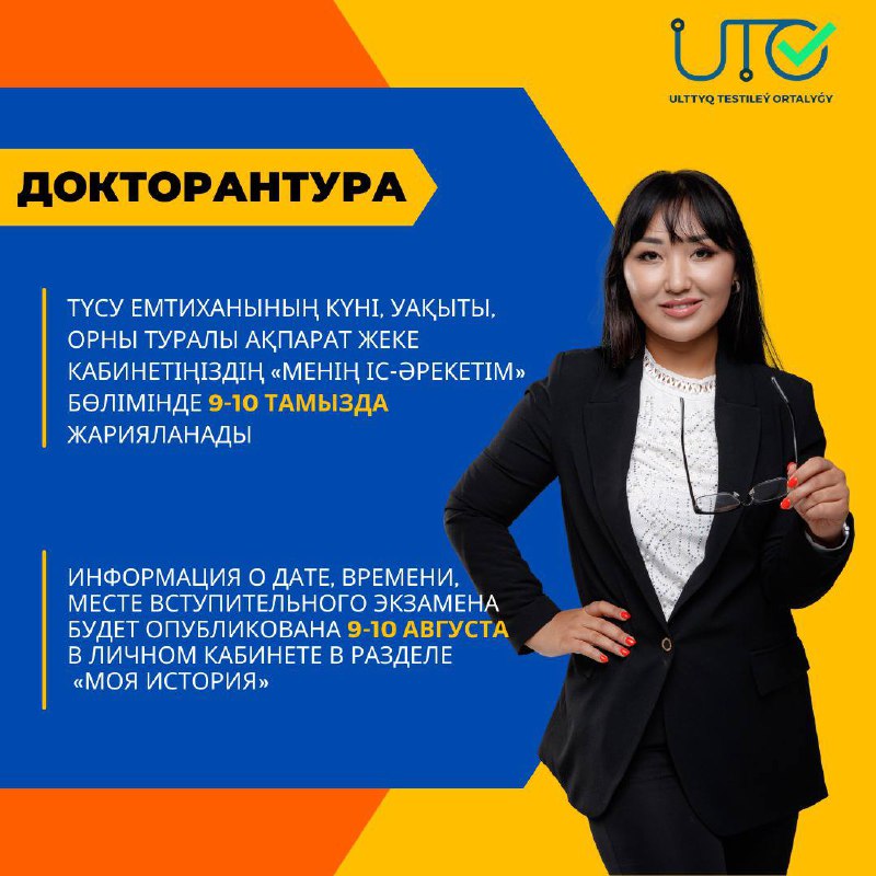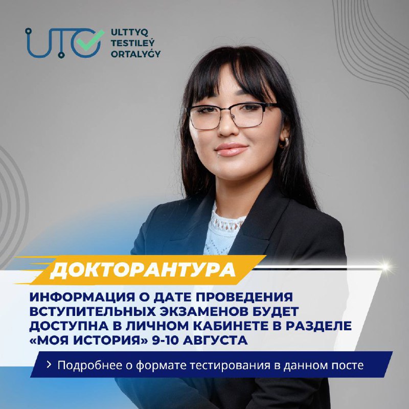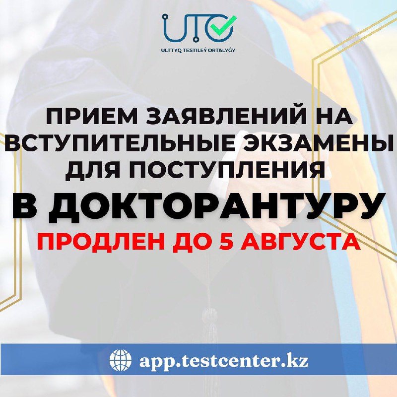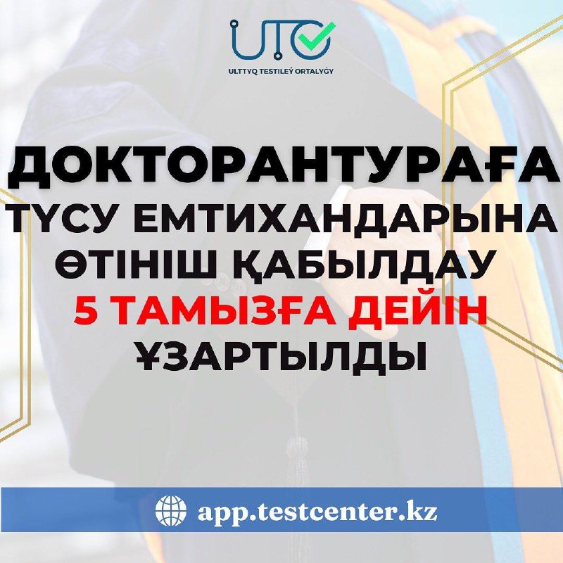 ⏰Сіздерге докторантураға түсу емтихандарына тіркелу app.testcenter.kz сайтында 3 тамызға дейін жалғасатынын естеріңізге саламыз.