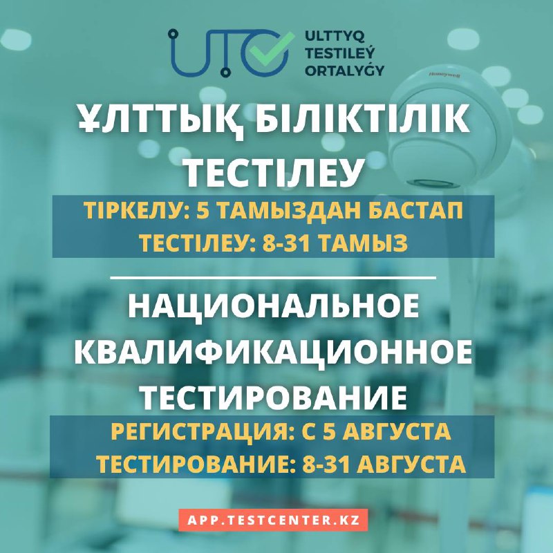💻2022 жылғы 5 тамыздан бастап app.testcenter.kz сайтында Ұлттық біліктілік тестілеуге өтініштерді қабылдау жүргізіледі.