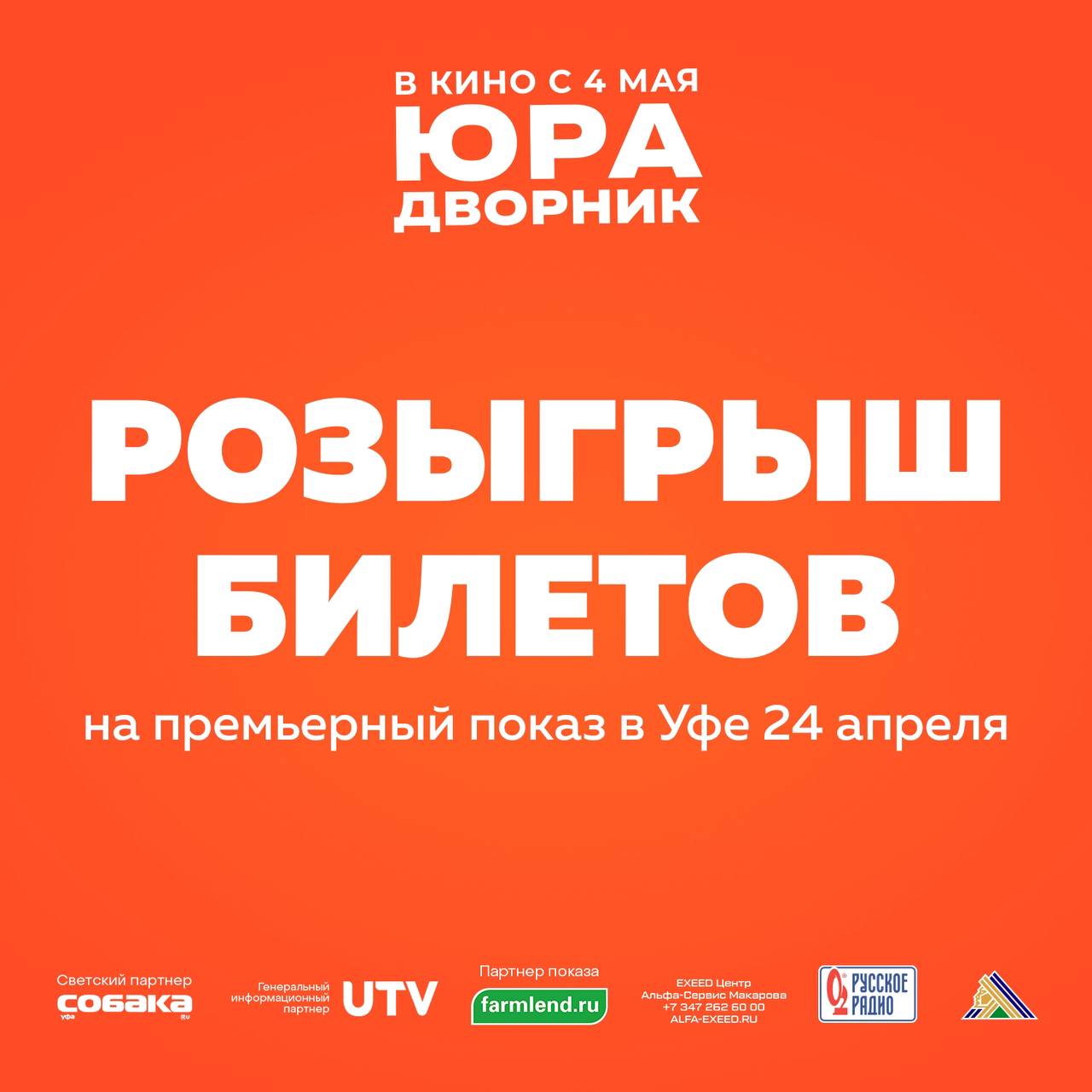 Телеканал UTV pinned «Хотите первым увидеть фильм про дворника Юру? UTV разыгрывает два пригласительных билета на два лица на предпремьерный показ фильма про дворника Юру, который состоится 24 апреля в 19:00 в уфимском кинотеатре «Родина». Условия простые: ✅Подпишитесь на…»