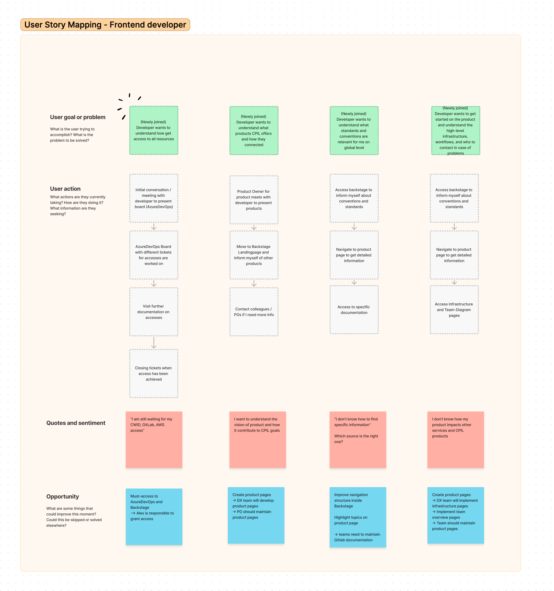 Также ответы респондентов дали нам более четкое понимание как выглядят характерные рабочие процессы для каждого типа разработчика, что работает хорошо, а где возникают трения. Это дало нам возможность создать сценарии для карты пользовательского пути.