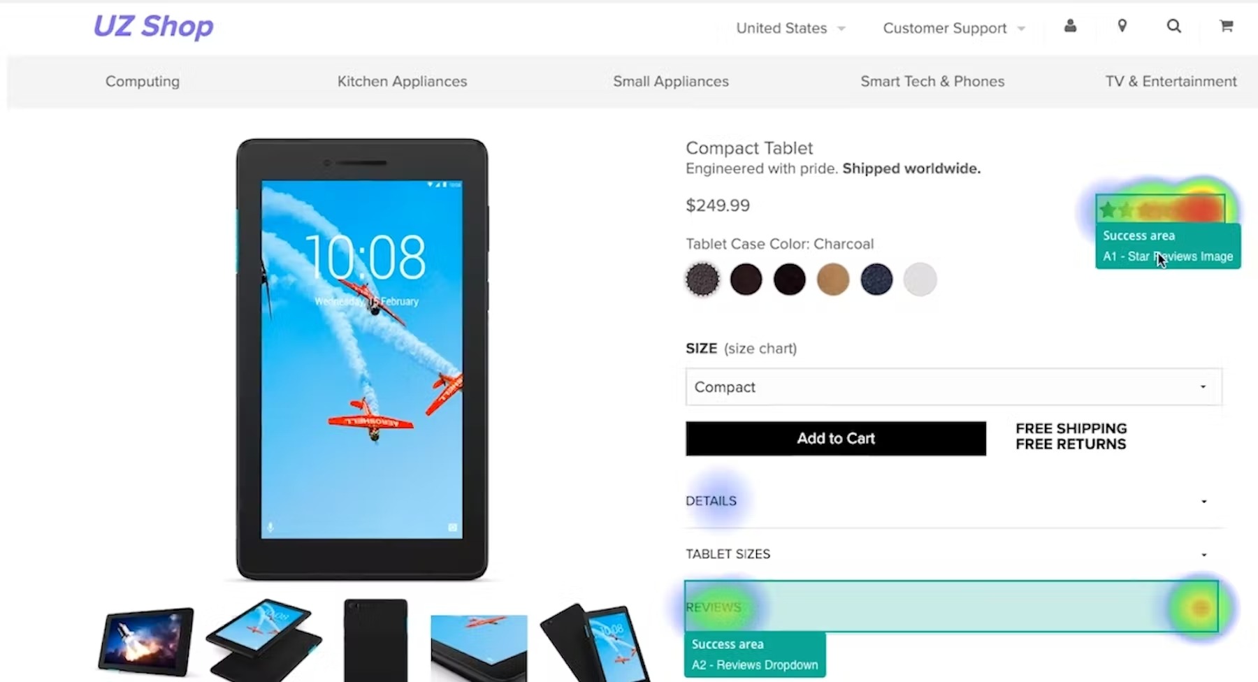 Вы также можете включить в один юзабилити-тест несколько последовательных заданий. Результатом теста является тепловая карта с дополнительной статистикой, на основании которой можно сделать выводы для улучшения пользовательского опыта.
