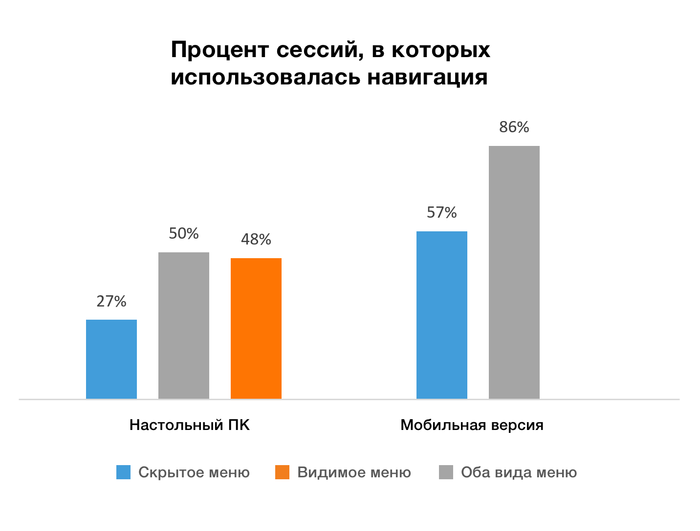 Как видно из графика под постом в мобильной версии только 57% пользователи вызвали скрытое меню, в версии для ПК таких пользователей было всего 27%