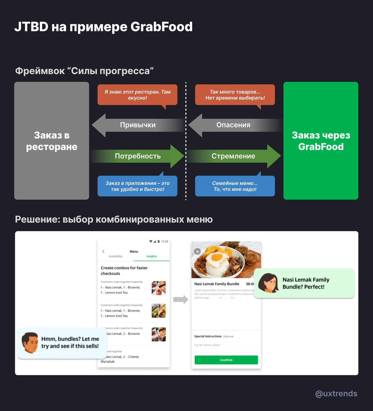 JTBD не является заменой существующих подходов и рабочих процессов. Он лишь помогает посмотреть на то, как люди принимают решения, и сформулировать гипотезы на основе теории "работ".