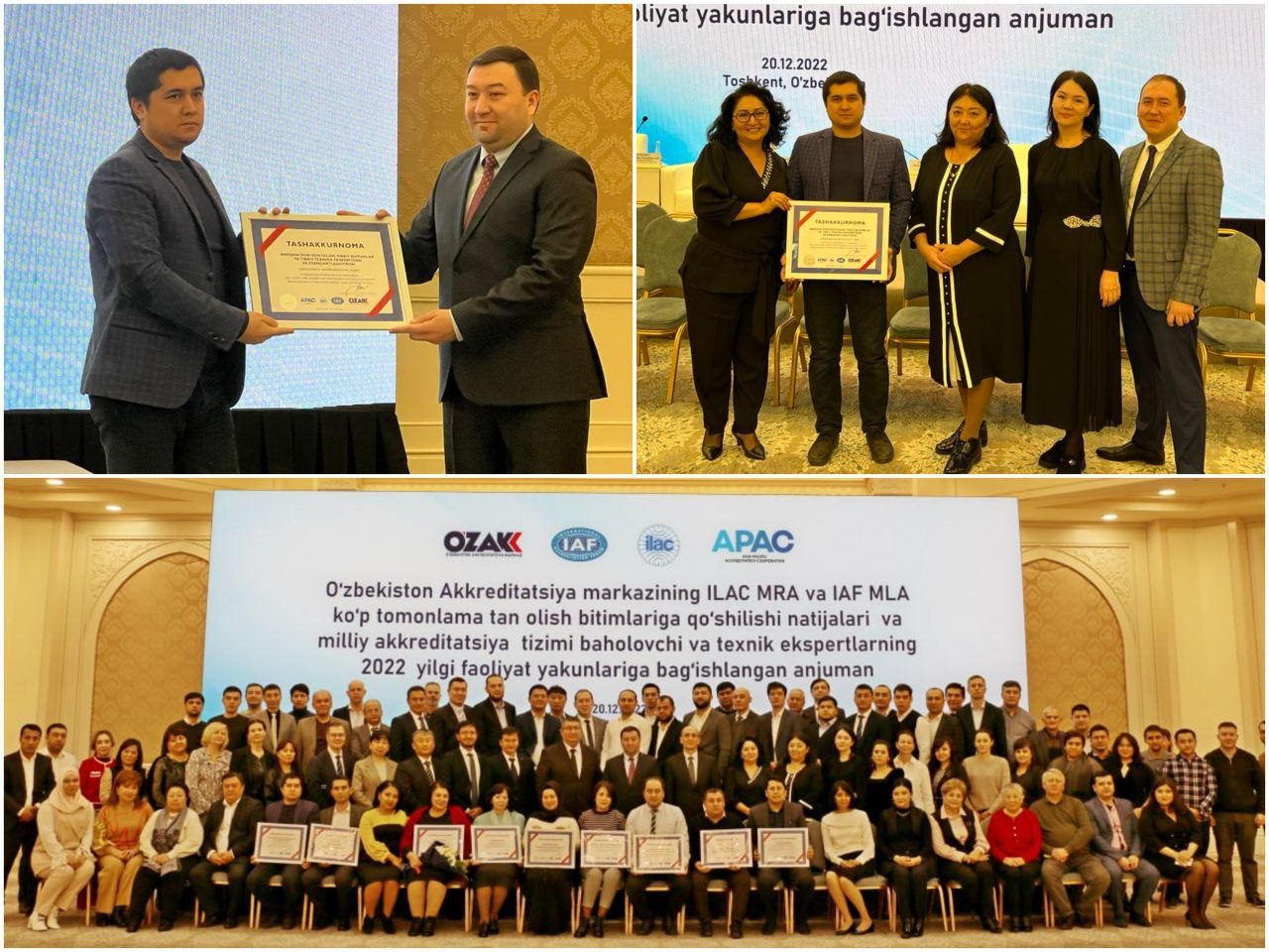 Унда миллий аккредитация тизимини APAC, IAF ва ILAC миқёсда тан олишга эришишда алоҳида ҳисса қўшган, намунали ва юқори самарага эришган, 2022 йилда APAC экспертлари томонидан ўтказилган папритет баҳолашдаги фаол иштирок этган баҳоловчи ва техник экспертлар ҳамда мувофиқликни баҳолаш органларининг фаол иштироки эътироф қилинди.
