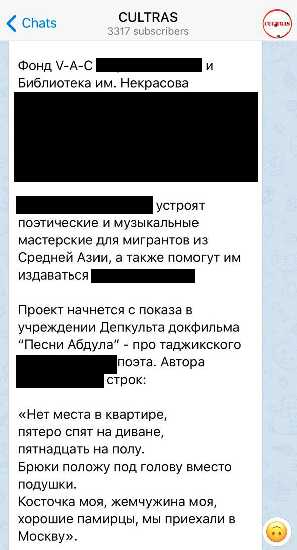 — В библиотеке им. Н.А. Некрасова вместе с ночующими посмотрим фильм «Песни Абдула» и обсудим художественные практики, связанные с миграцией. В обсуждении примут участие куратор издательства фонда V–A–C Карен Саркисов, художница Бермет Борубаева и режиссер фильма Анна Моисеенко. Все это — в рамках представления проекта «Посольство», который начнёт работу в библиотеке в конце апреля.