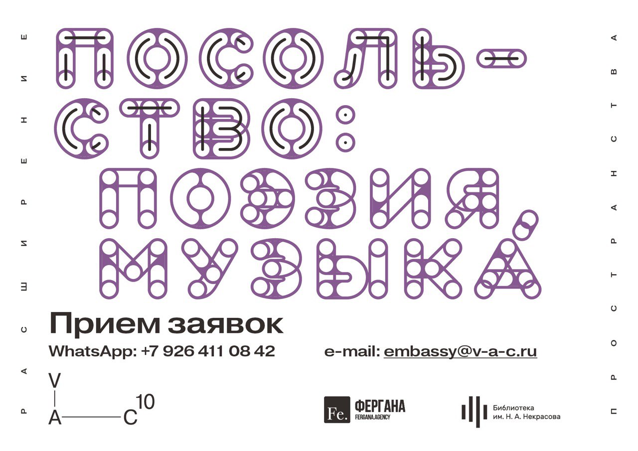 На серии встреч участники смогут обсудить свое творчество, поэты — выбрать стихи для публикации, перевода и чтения на большом фестивале в парке «Фили», а музыканты — создать новые произведения, записать их на символическом лейбле «Посольство» и представить на фестивале в рамках совместной музыкальной программы.