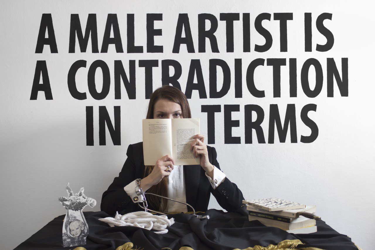 Кьяра Фумаи. «Мужчина-художник — это явное противоречие (фрагмент). Гарри Гудини читает Валери Соланас». 2013. 6 фотографий. Коллекция V–A–C.