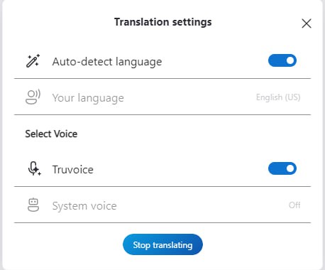 5А. Если все получилось, то у вас в разговоре в дополнительных опциях появится кнопка Translate и голос Truvoice.
