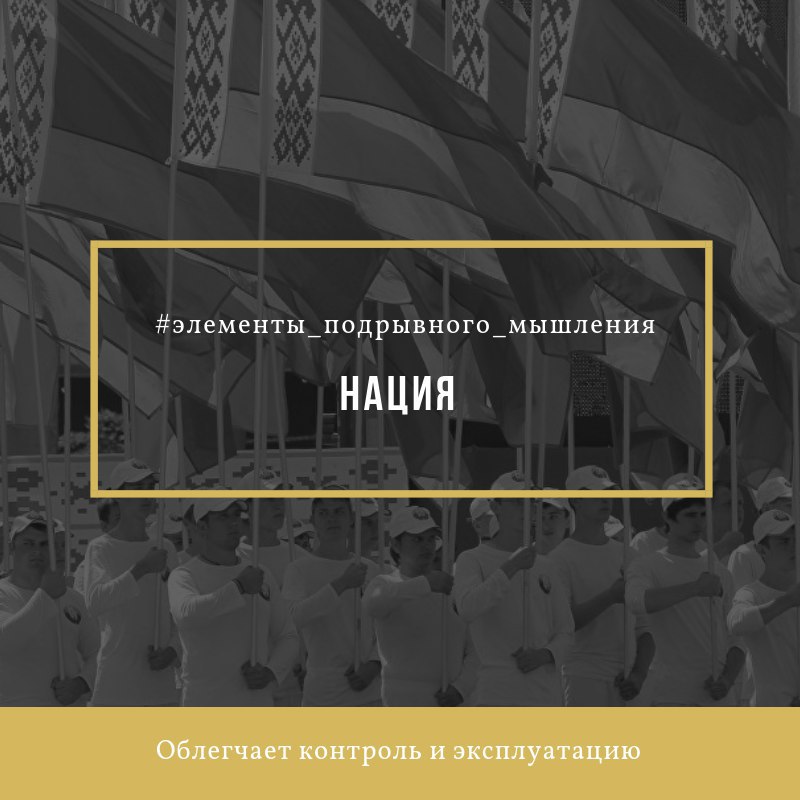 Для кого-то нация — это люди, объединенные кровью и почвой, для других — исторически объединенные единой культурой и языком общества, для третьих — идеологический инструмент господствующего класса. Существует целый ряд определений нации, мы представим самое, на наш взгляд, подрывное.
