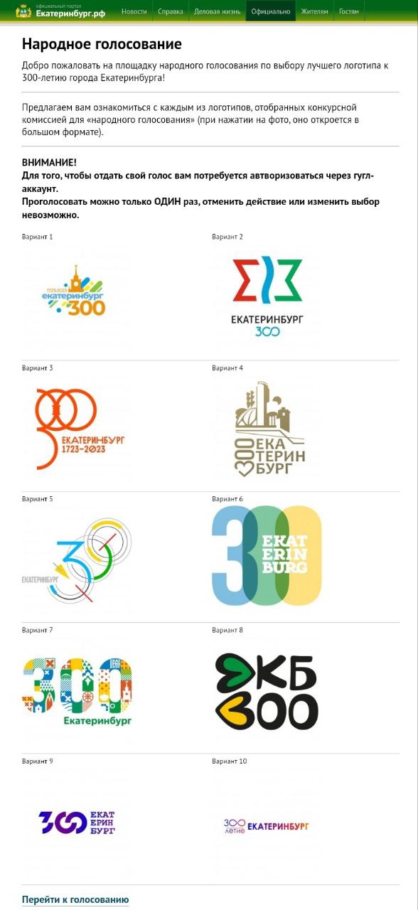 Хоть у мэрии Екатеринбурга возникли трудности с тем, чтобы выбрать наилучшие варианты логотипа к 300-летию города, но 10 наиболее интересных из числа полсотни присланных работ всё же предложили для народного голосования на сайте городской администрации.
