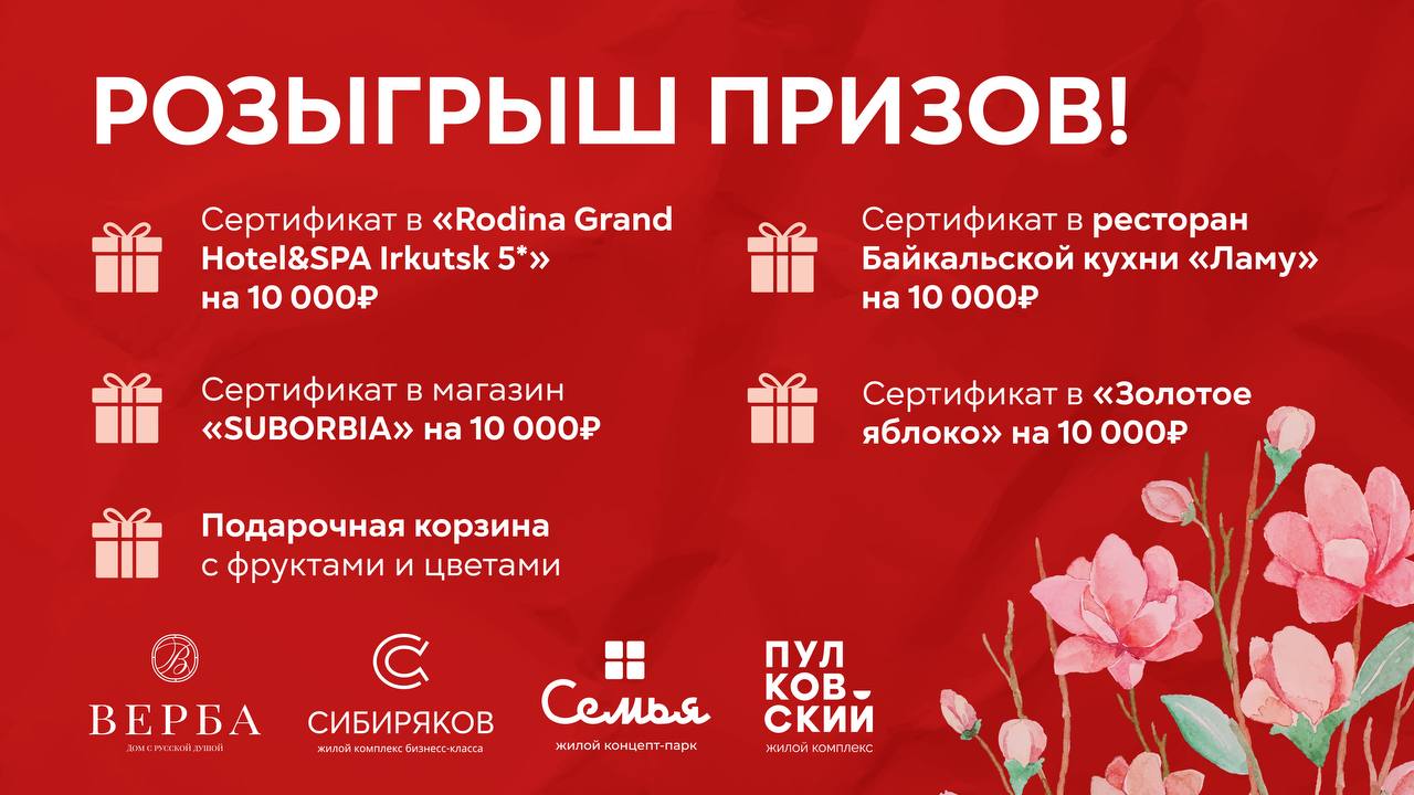 — сертификат в «Rodina Grand Hotel & SPA Irkutsk» на 10 000 ₽;