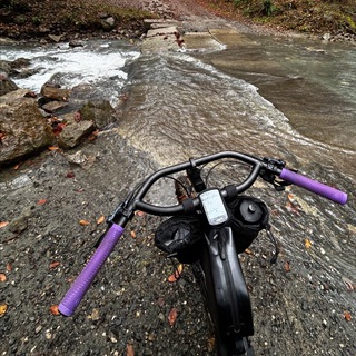 Утром 2 января грузимся в карш и едем в Головинку, план сплавится от Солохаула меняется на ходу, из за сложностей логистики (и позднего выезда), принимаем решение идти короткий участок в 12км. Завожу на старт жену - оставляю с ее вещами и пакрафтом, а сам возвращаюсь на финиш, оставляю машину, гружу велосипед и выдвигаюсь. На багажнике пакрафт, внутрянка + весла, на руле герма с гидрокостюмом, спасиком и вещами. 12км с набором 200м проезжаю за 40 минут, в это время жена погуляла по 33 водопадам, и начинаем сборы.