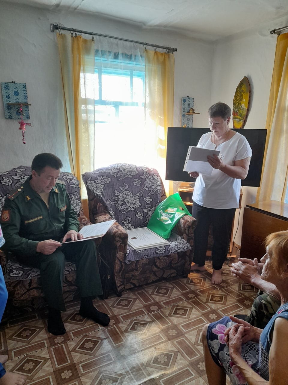 Мы посетили на дому родителей Алексея – маму Евгению Васильевну и отца Александра Александровича, вручив от имени Губернатора Забайкальского края почетные грамоты за достойное воспитание сына, поступок которого в военном комиссариате сравнивают с подвигом героя Великой Отечественной войны. Не случайно ведь, оба – Алексеи.