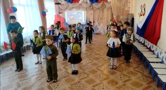 Лейтмотивом всего мероприятия стало воспитание молодого нерадивого солдата, который всего боялся, в роли которого с особым шармом выступила воспитатель старшей группы Огурцова Наталья Михайловна. Вместе с солдатиком дети узнавали, какие профессии бывают в армии – танкисты, летчики, артиллеристы, десантники, морские пехотинцы и т.д., а еще очень успешно отгадывали загадки. К концу праздника итог был закономерным – солдатик перестал всего бояться, стал отважным и смелым, как и подобает настоящему защитнику Отечества.