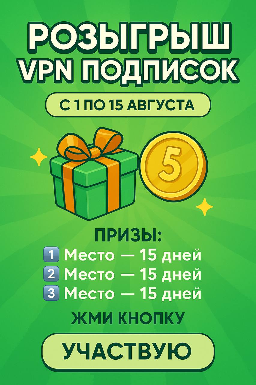 🎉 РОЗЫГРЫШ VPN ПОДПИСОК — с 1 по 15 августа!