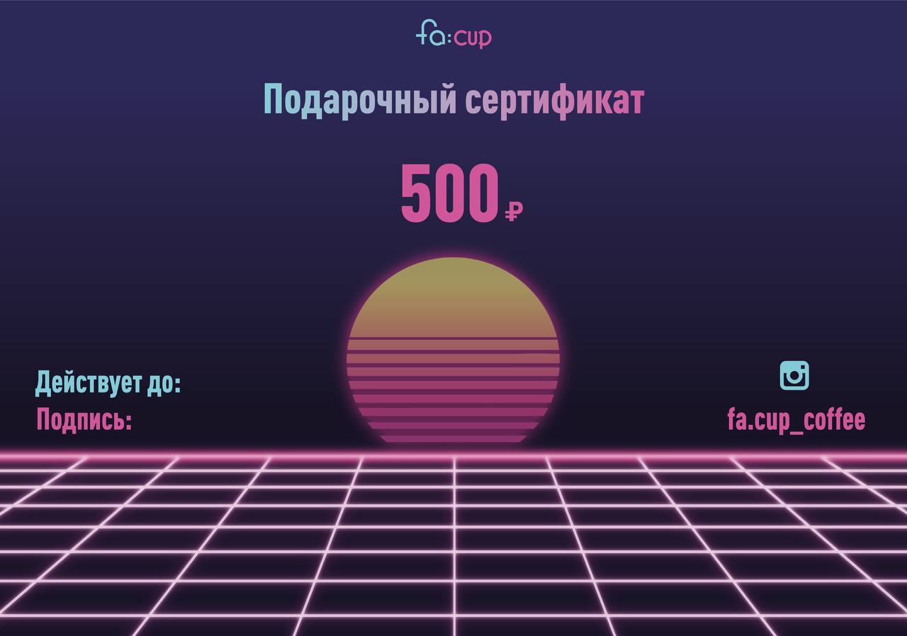 2. Подарочный сертификат на 500 рублей от Fa:Cup кофе.