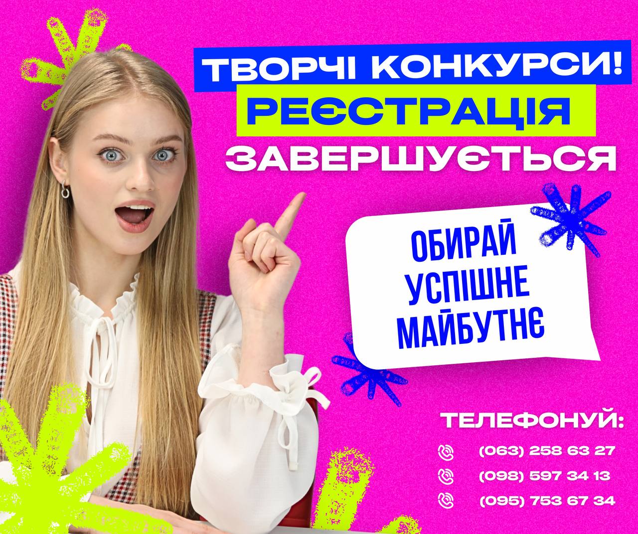 ❗️ УВАГА! Сьогодні ОСТАННІЙ день подачі заяв на участь у творчих конкурсах для вступу на БЮДЖЕТ – до 18:00 10 липня!