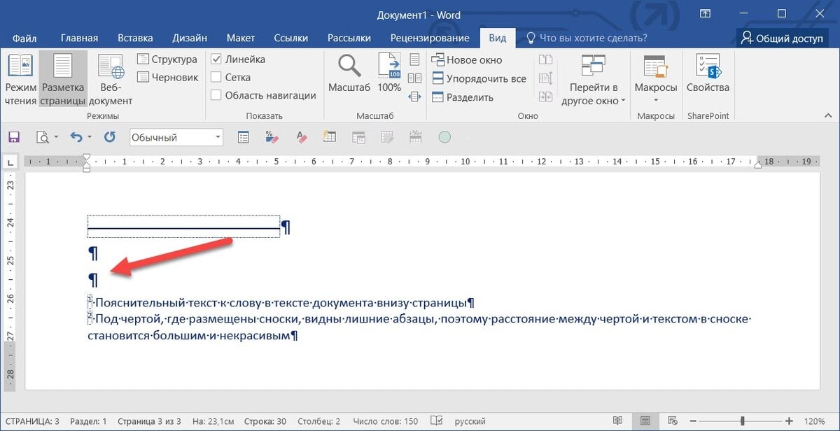 *Совет*: пройдитесь по всем Разделителям, которые есть в Сносках, то есть выберите их последовательно и проверьте нет ли лишних абзацев в них.