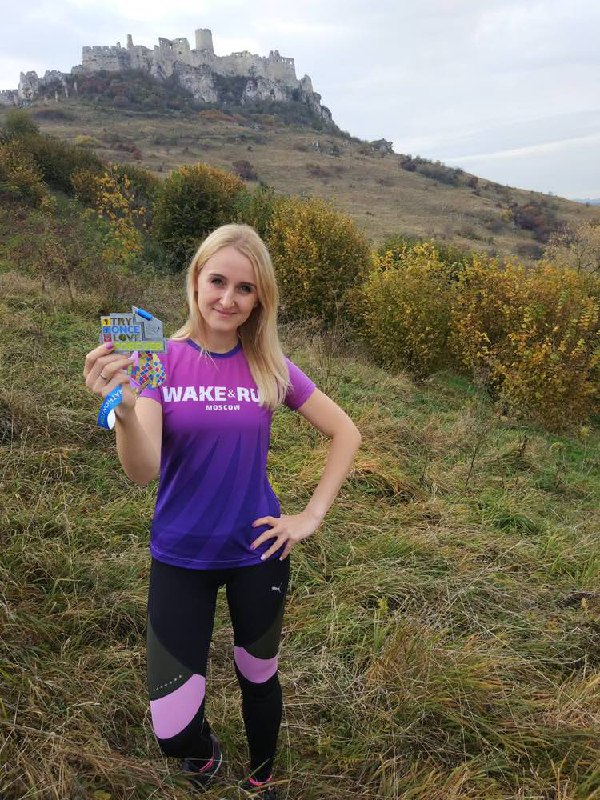 Мы ещё расскажем об этом интереснейшем старте более подробно, а пока ловите фото Яны с медалькой на фоне памятника всемирного наследия ЮНЕСКО - замка XI века Спишский град 😎