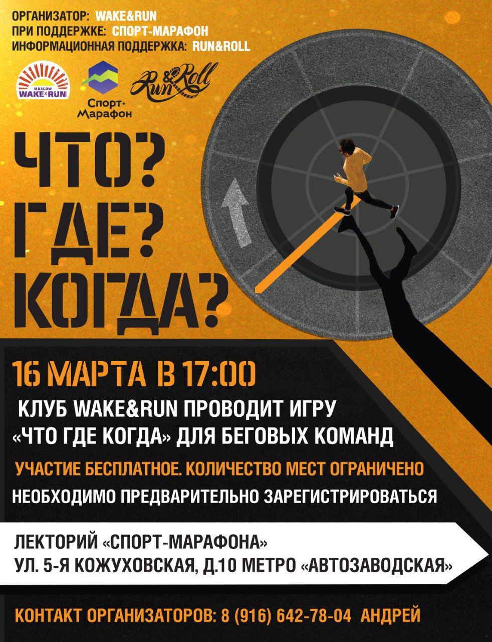 Кроме завтрака друзей @wearegrut , завтра пройдёт ИГРА "Что? Где? Когда?" среди беговых сообществ в лектории "Спорт-Марафона" 😎