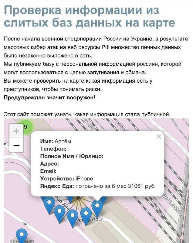 Кто-то заморочился и сделал карту с привязкой пользователей по адресам, где можно посмотреть имя, почту, телефон и даже сумму заказов за последние полгода пользователей Еды (скриншот внизу поста)